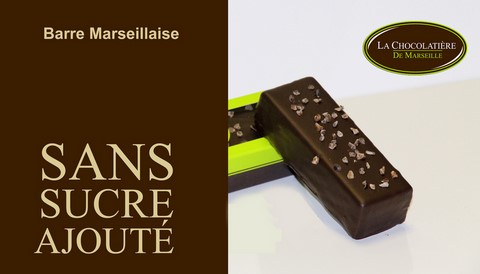 Une barre marseillaise praliné au chocolat noir avec édulcorant sans sucre ajouté.
