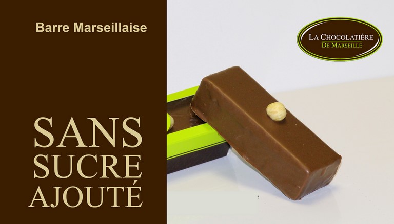 Une barre marseillaise praliné au chocolat au lait avec édulcorant.