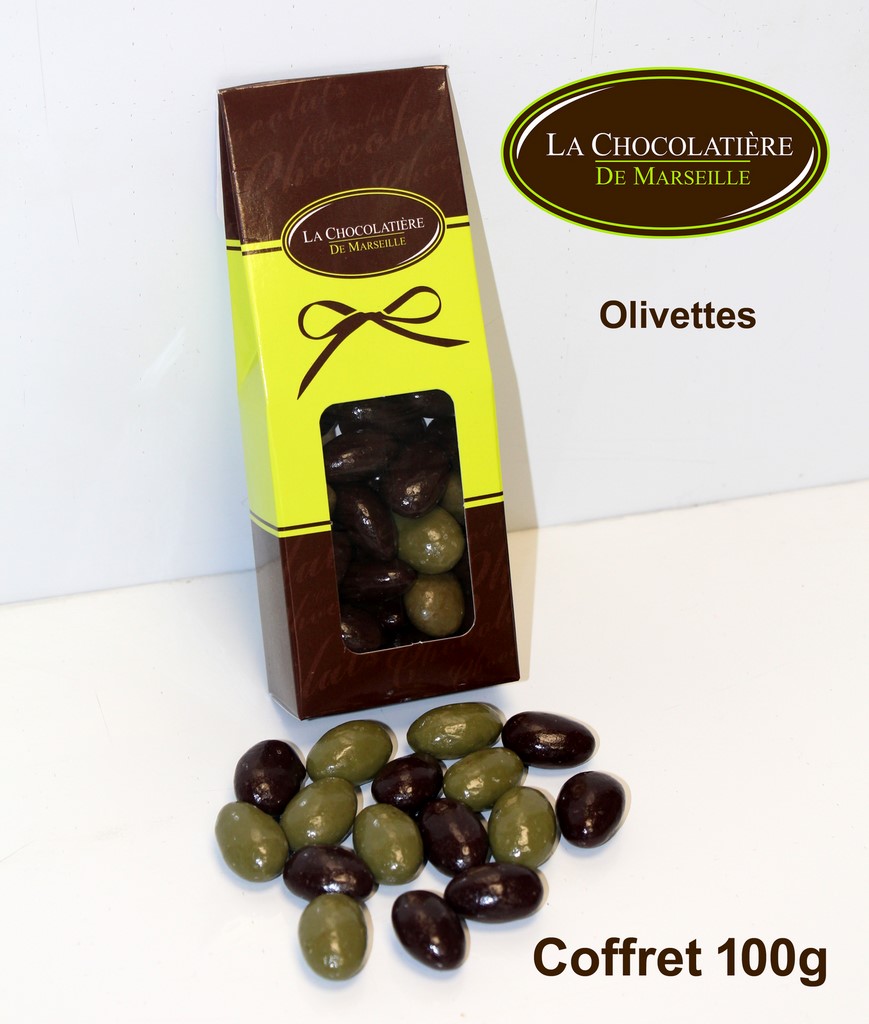 100 g d'amandes enrobées "olivettes" de chocolat noir