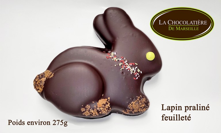 Lapin praliné feuilleté chocolat noirPoids environ 275g